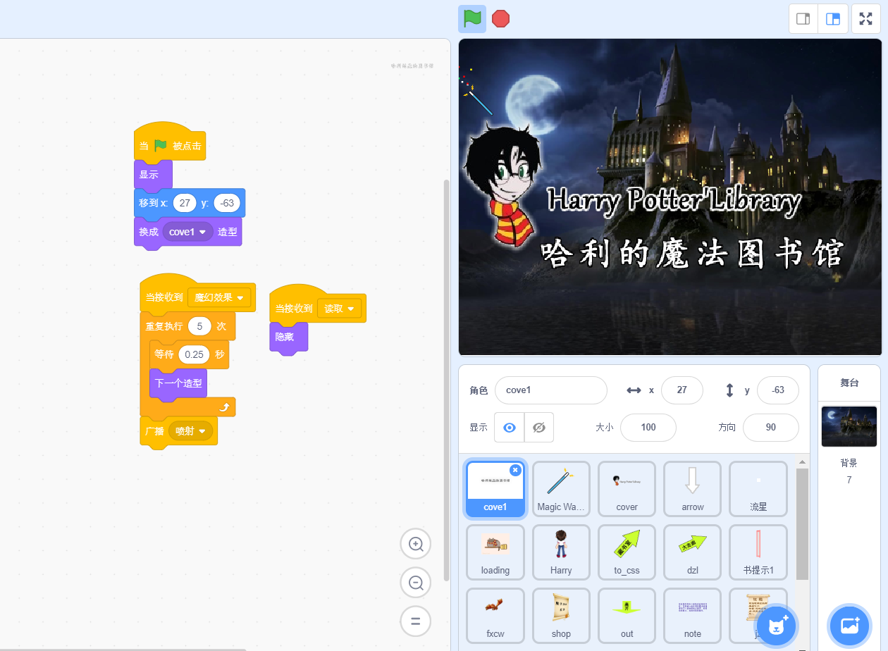 作品介绍: 利用scratch制作超有创意的哈利的魔法图书馆; 作品特色: 趣味、创意 作品归类: scratch作品源码 声明:本站所有文章,如无特殊说明或标注,均为本站原创发布。任何个人或组织,在未征得本站同意时,禁止复制、盗用、采集、发布本站内容到任何网站、书籍等各类媒体平台。如若本站内容侵犯了原著者的合法权益,可联系我们进行处理。