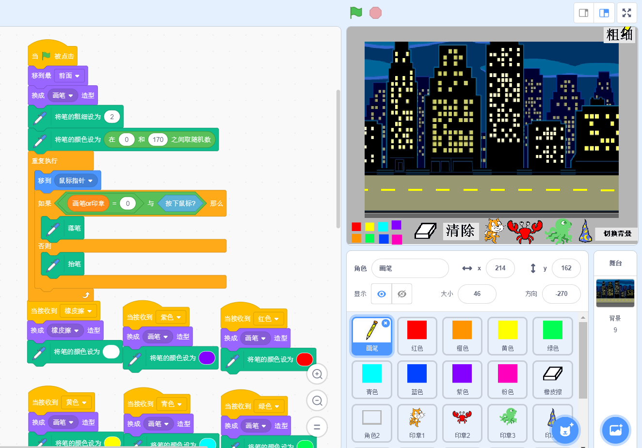 作品介绍: 利用scratch制作超有创意的画画; 作品特色: 趣味、创意 作品归类: scratch作品源码 声明:本站所有文章,如无特殊说明或标注,均为本站原创发布。任何个人或组织,在未征得本站同意时,禁止复制、盗用、采集、发布本站内容到任何网站、书籍等各类媒体平台。如若本站内容侵犯了原著者的合法权益,可联系我们进行处理。