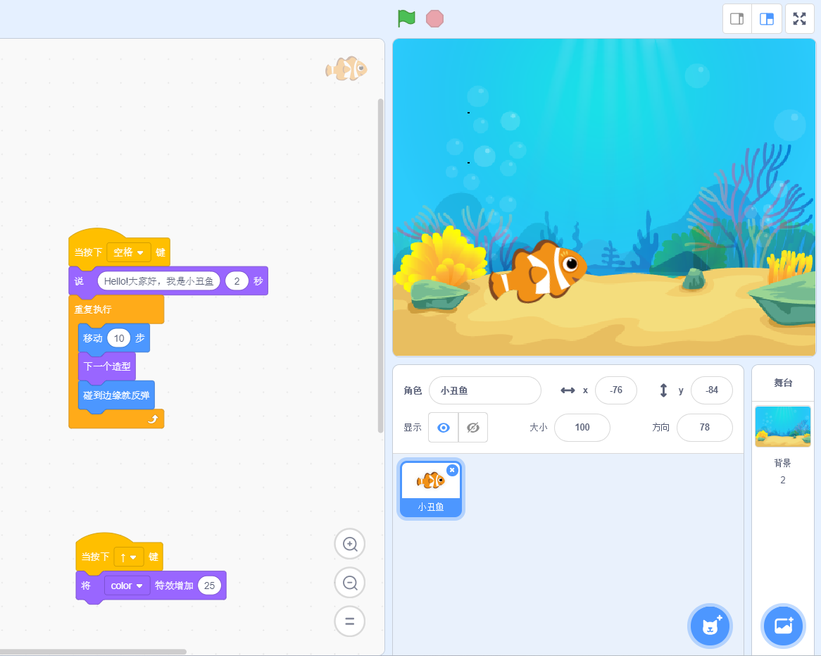 作品介绍: 利用scratch制作超有创意的百变小鱼; 作品特色: 趣味、创意 作品归类: scratch作品源码 声明:本站所有文章,如无特殊说明或标注,均为本站原创发布。任何个人或组织,在未征得本站同意时,禁止复制、盗用、采集、发布本站内容到任何网站、书籍等各类媒体平台。如若本站内容侵犯了原著者的合法权益,可联系我们进行处理。
